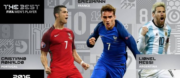 Estão definidos os finalistas para a premiação de melhores do ano pela Fifa. Antoine Griezzman, Cristiano Ronaldo e Lionel Messi…